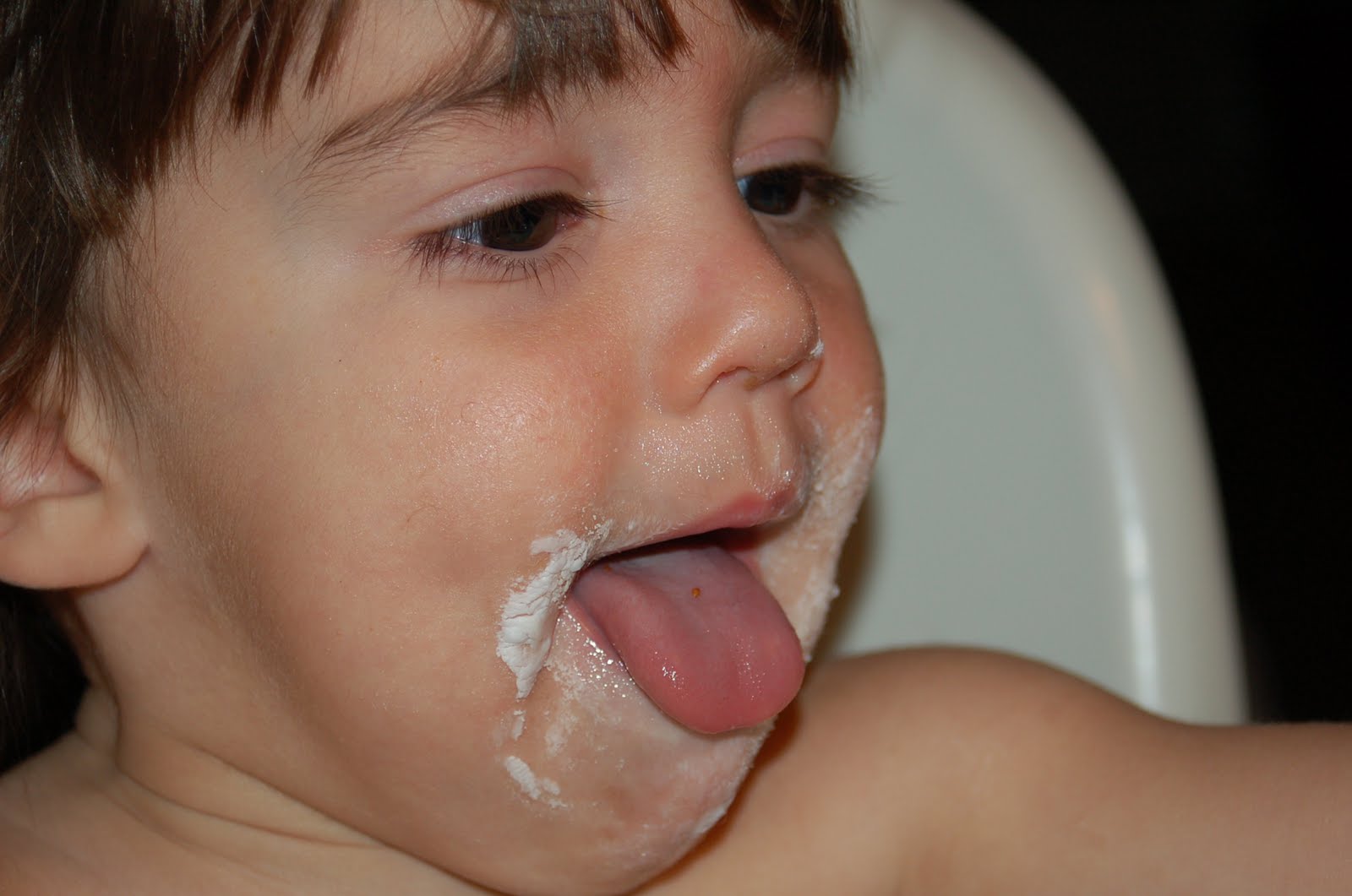 Max did what Max does best. Ate. He indulged himself in icing, candy and blueberries. The dinner of a champion. This baby has a sweet tooth like NONE OTHER. Seriously, it baffles me how much sugar he can consume without puking. It does totally show in his boisterous, banshee behavior. So serious about icing, he was double fisting.